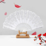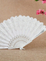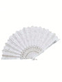 1pc Elegant Vintage Floral Folding Fan - Ladies White Handheld Fan With Silver Flower Patterns, Chinese Style Hand Fan, Suitable For Weddings, Galas And Parties, Fashionable Dance Fan